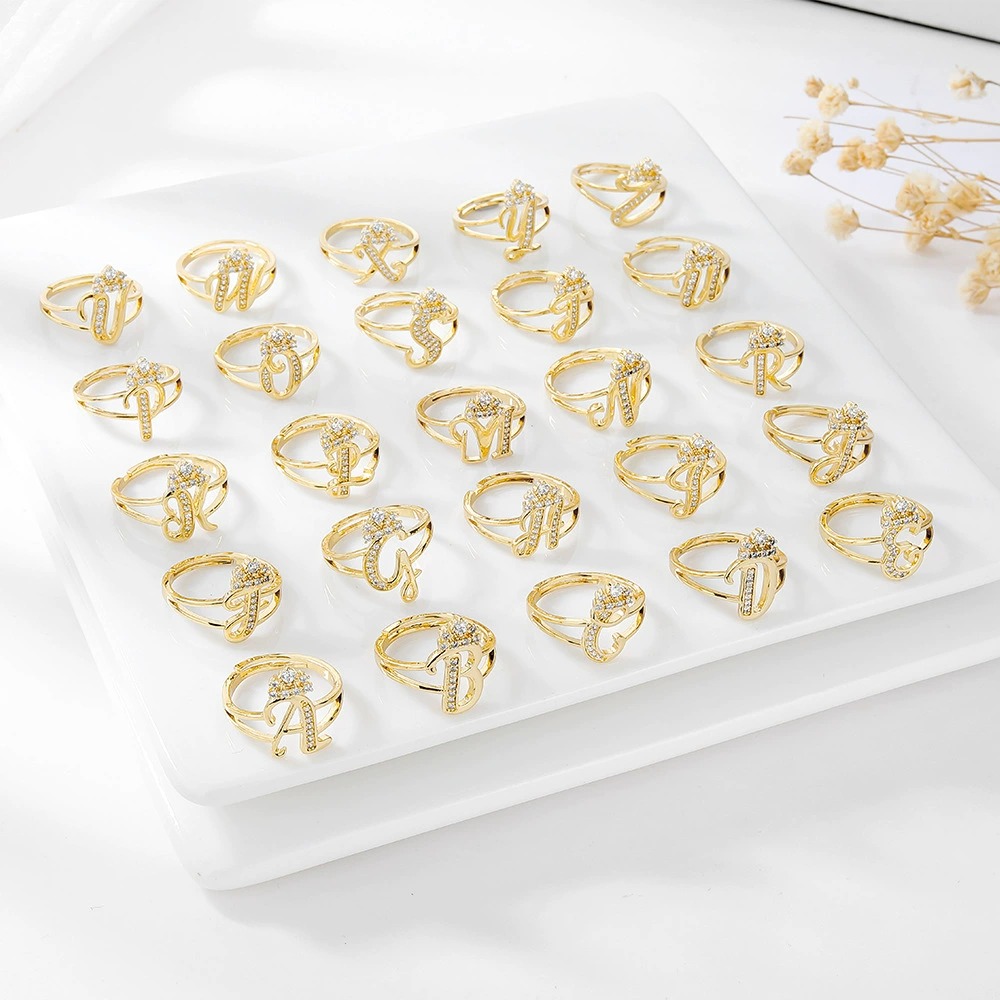 26 Letters Optional Crown Diamond-Encrusted Ring - Women's Light Luxury Personalized Letter Accessory