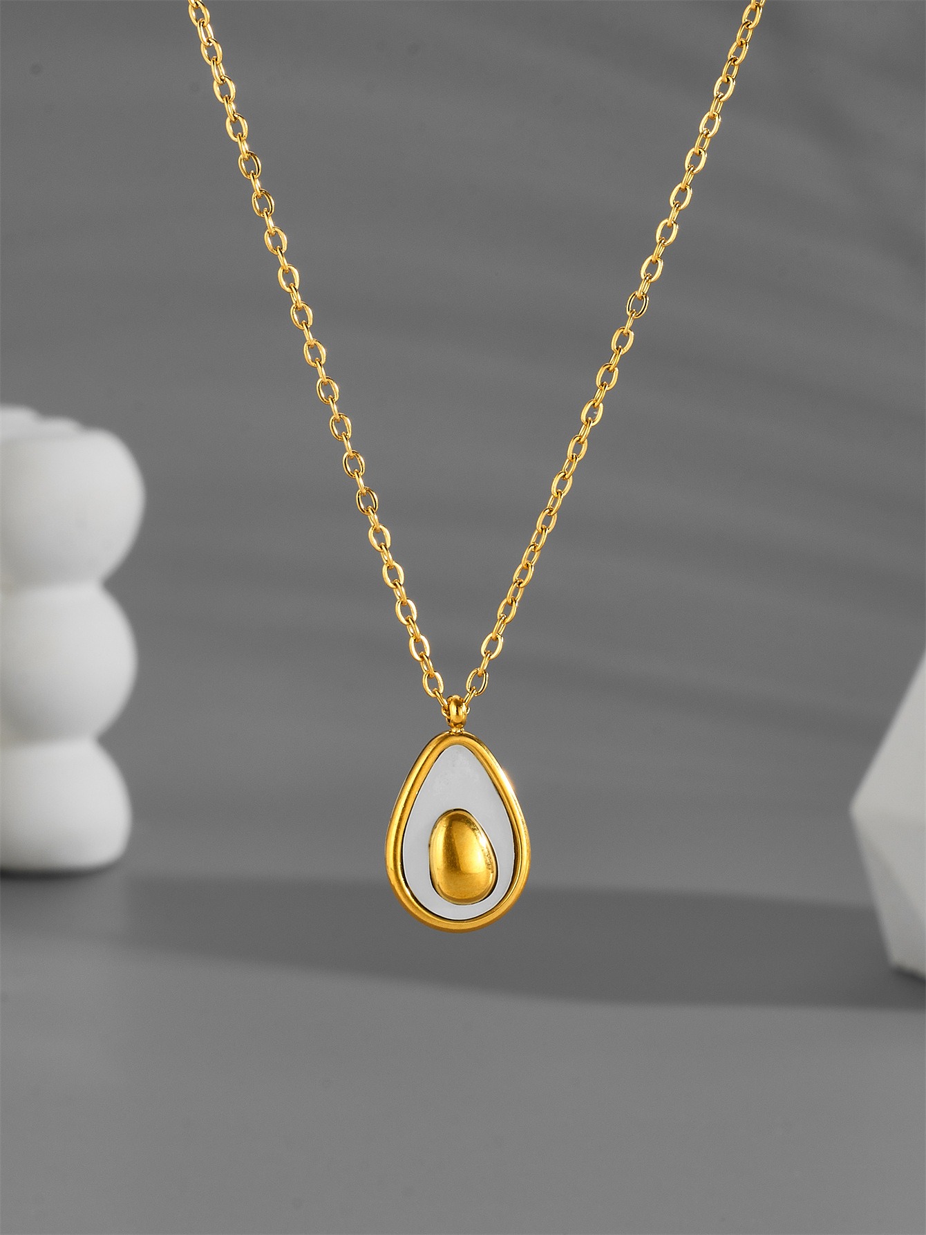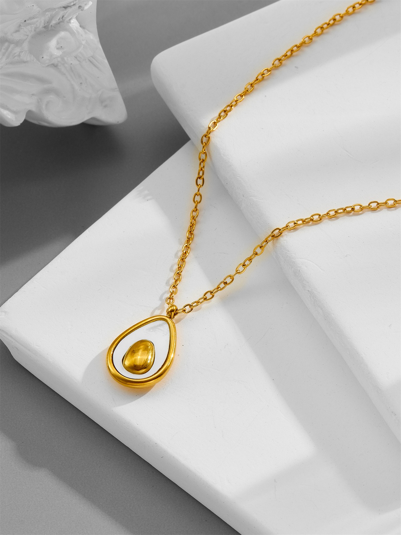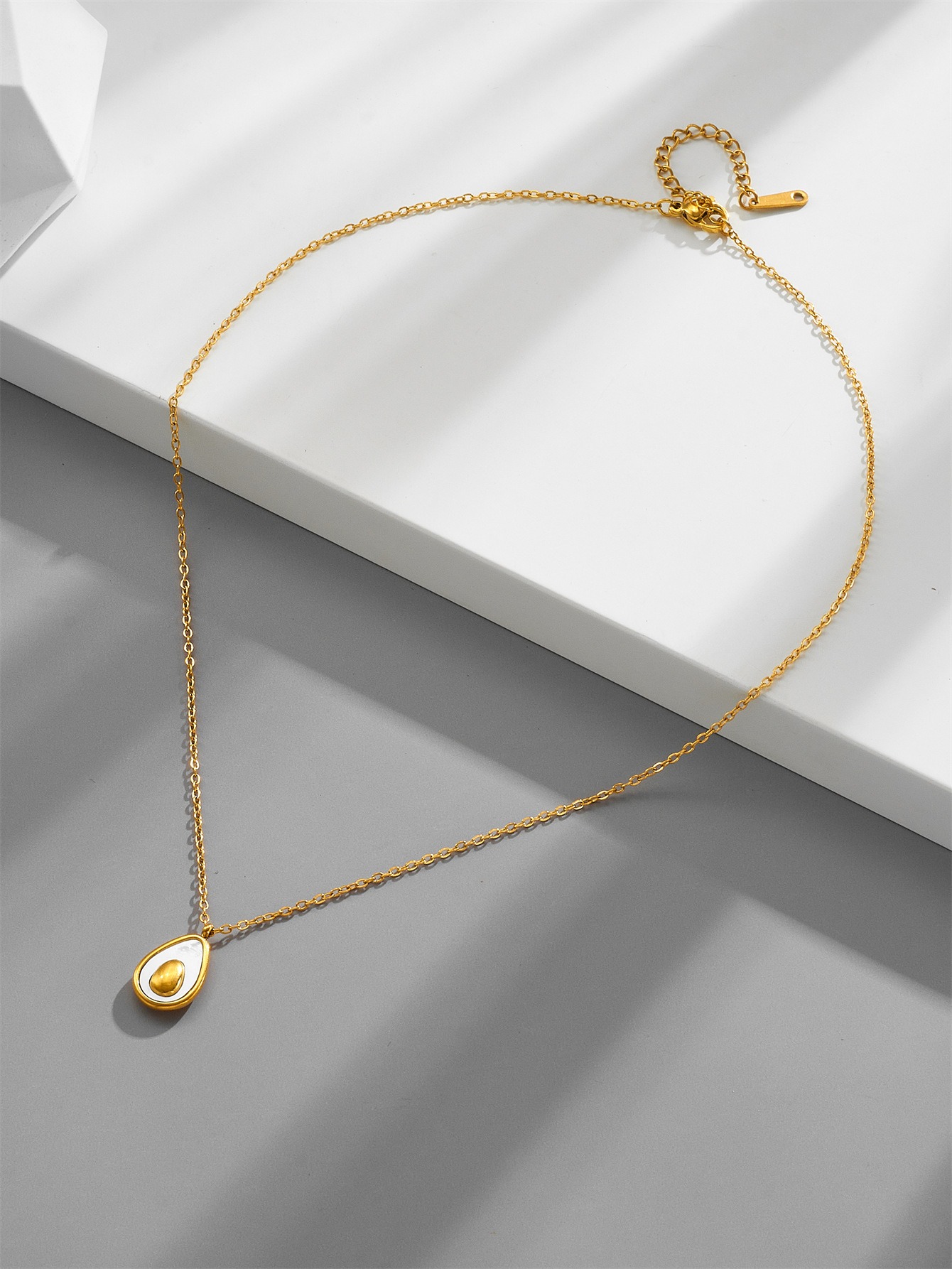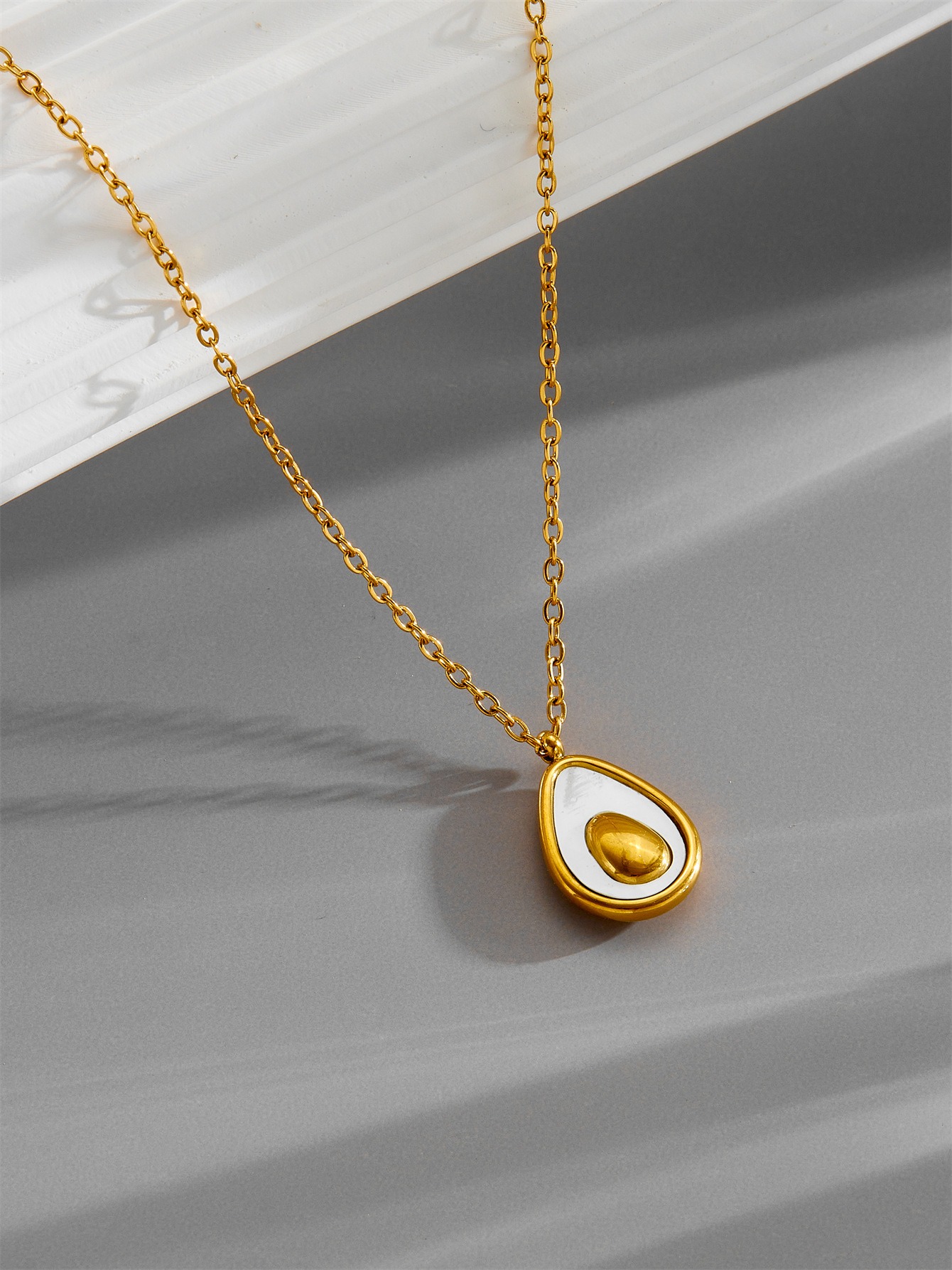 Gold-White Contrast Avocado Pendant Necklace|Gentle Companion for Daily Elegance