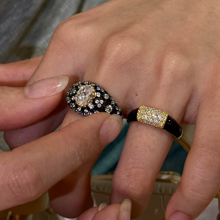 Black Gold Dream S925 Sterling Silver Black-Gold Plated Diamond Ring Set Vintage Modernity at Your Fingertips