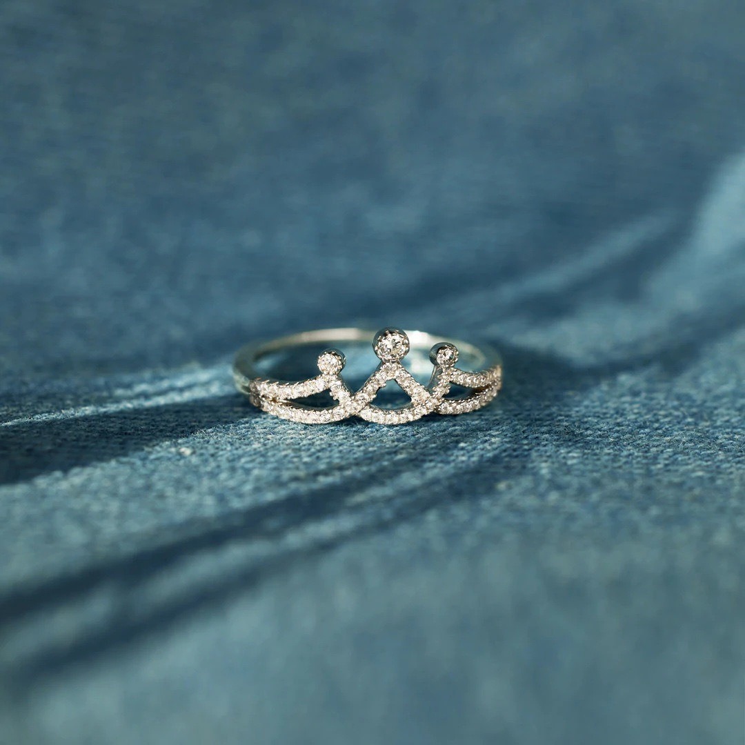 Crown Starburst Sterling Silver Diamond Open Ring(Free shipping on orders of two or more items)
