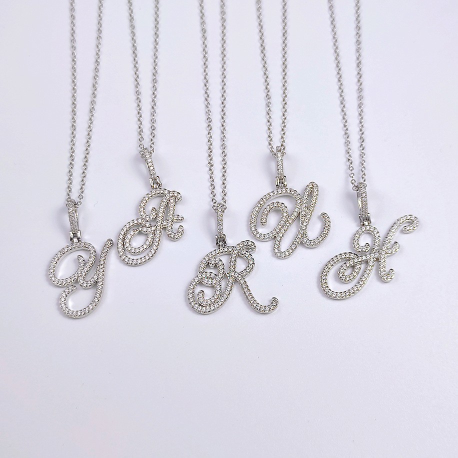 Floral Letter Full-Diamond Pendant Necklace (Gold/Silver Version)