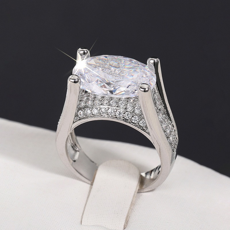 High-Luxury Design: Oval Main Diamond + Four-Prong Setting + Pavé Band