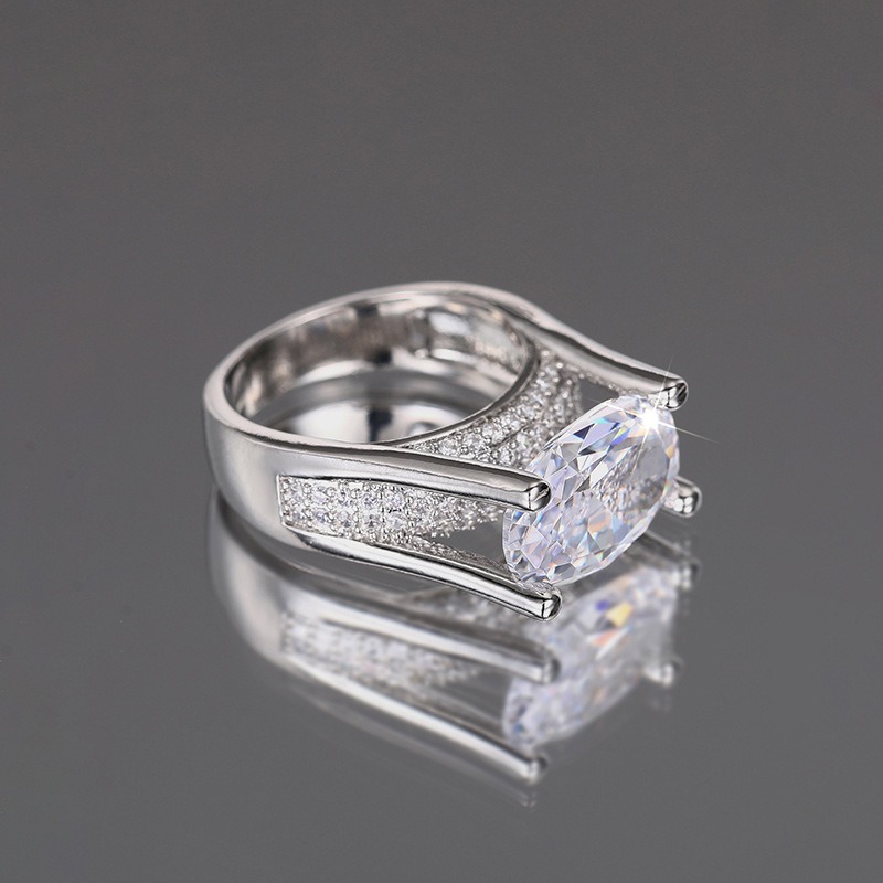 Oval Main Diamond Four-Prong Ring | Platinum Finish + Pavé Band, For Every Moment Of Poised Nobility