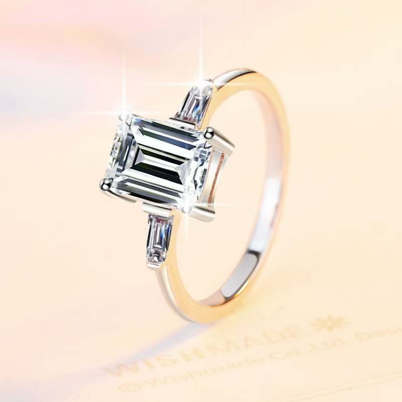 S925 Silver Emerald-Cut Diamond Light Luxury Ring