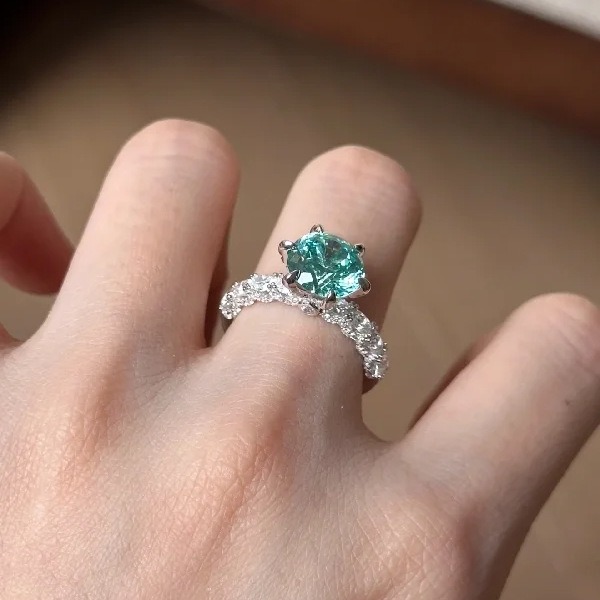 S925 Silver Plated White Gold Six-Prong Round Diamond Full-Set Ring