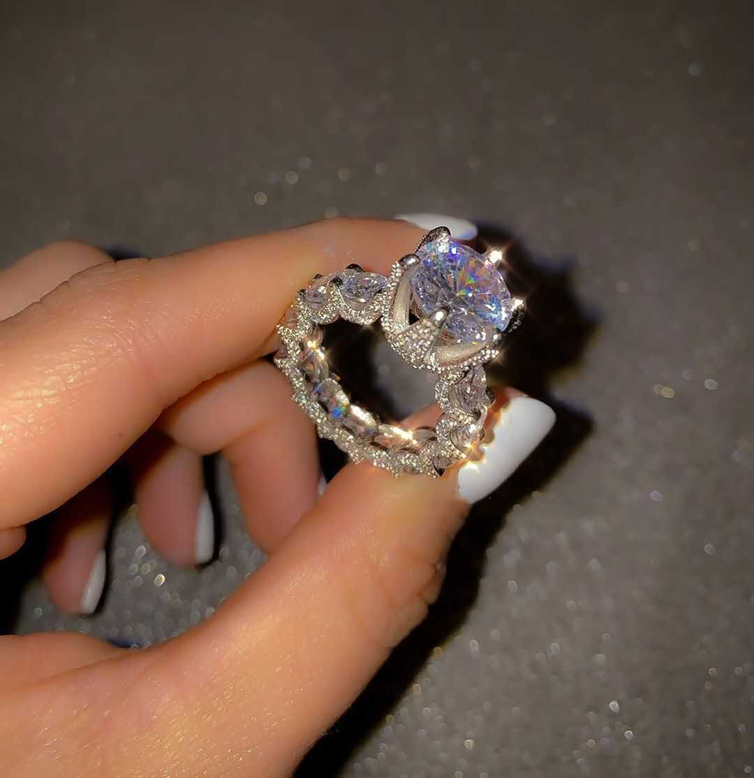 Full-Diamond S925 Silver Plated White Gold Sparkling Band