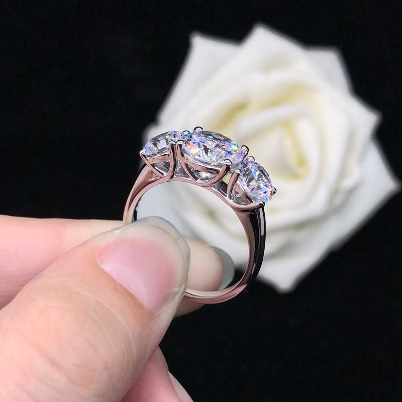 Triple Starburst S925 Sterling Silver Three-Stone Ring